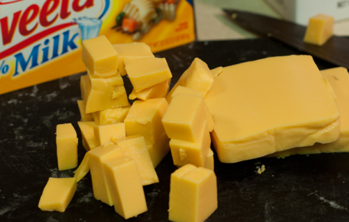 Using Velveeta makes the soup cheesy and creamy, but you could use whatever cheese you have on hand. Just cut it into small pieces, add to the potato mixture, and melt.