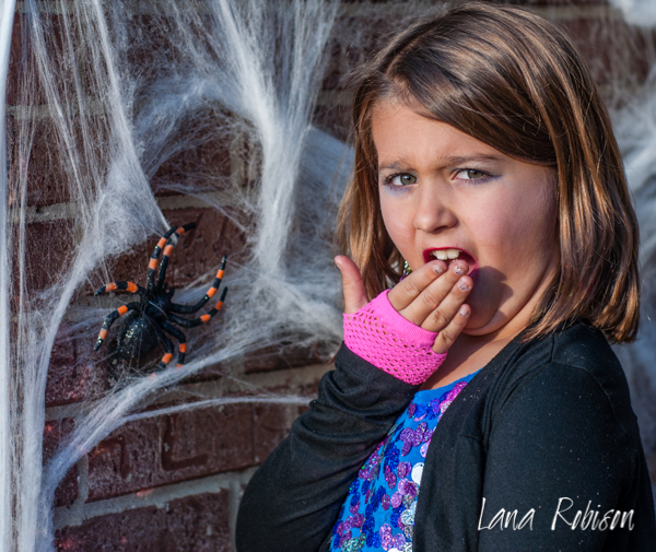 Dressing up for Halloween comes naturally to this little drama queen. Her costume was a Pop Star Diva Vampire, but she ditched the teeth when she realized she couldn’t eat candy with them in! Here is her version of the modern day “Little Miss Muffet” and the spider. She is way too funny!